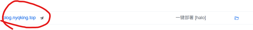 点击 创建网站 选择上方 一键部署 在已安装应用中选择 halo 并提前输入你想要的域名例如本博客的域名是:blog.nyqking.top 其他不动,点击 确认