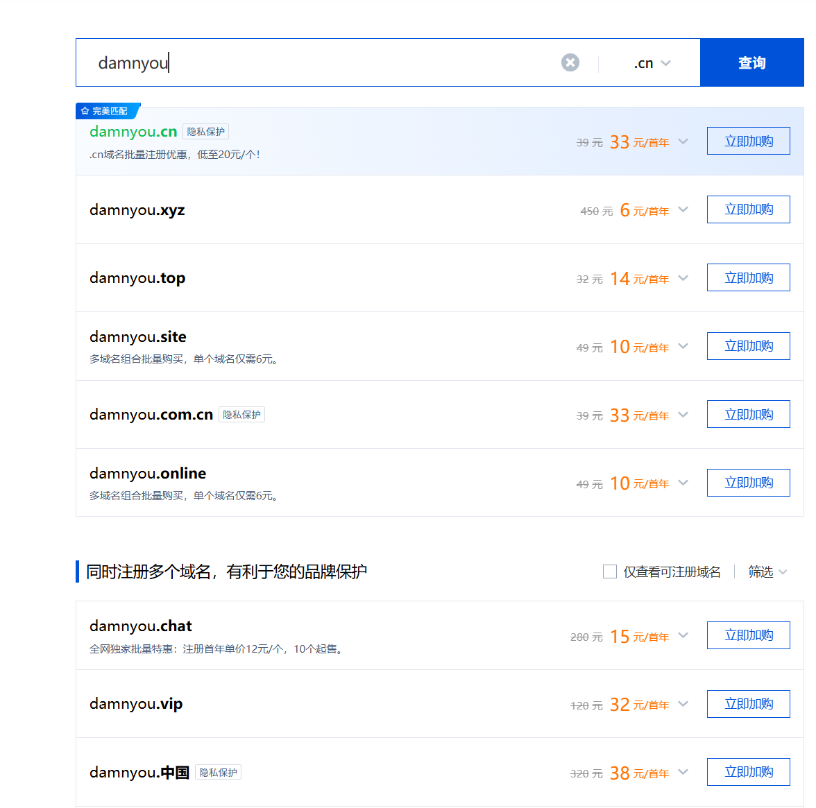 注意⚠️:域名越短越贵,低于五个字母的域名价格会飙升