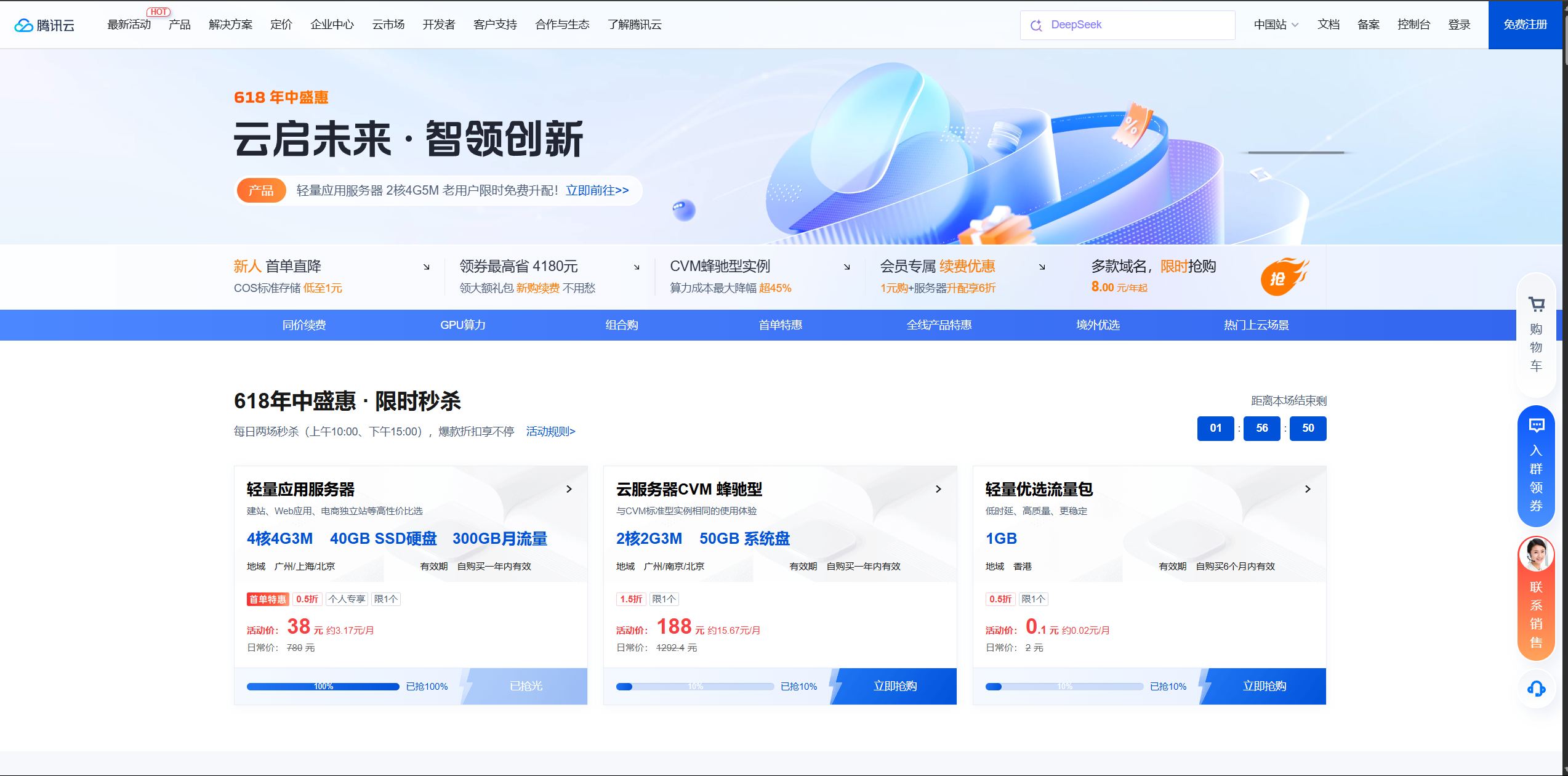 本文以国内的腾讯云服务器为例,因为腾讯云通常对新用户有更大的优惠。