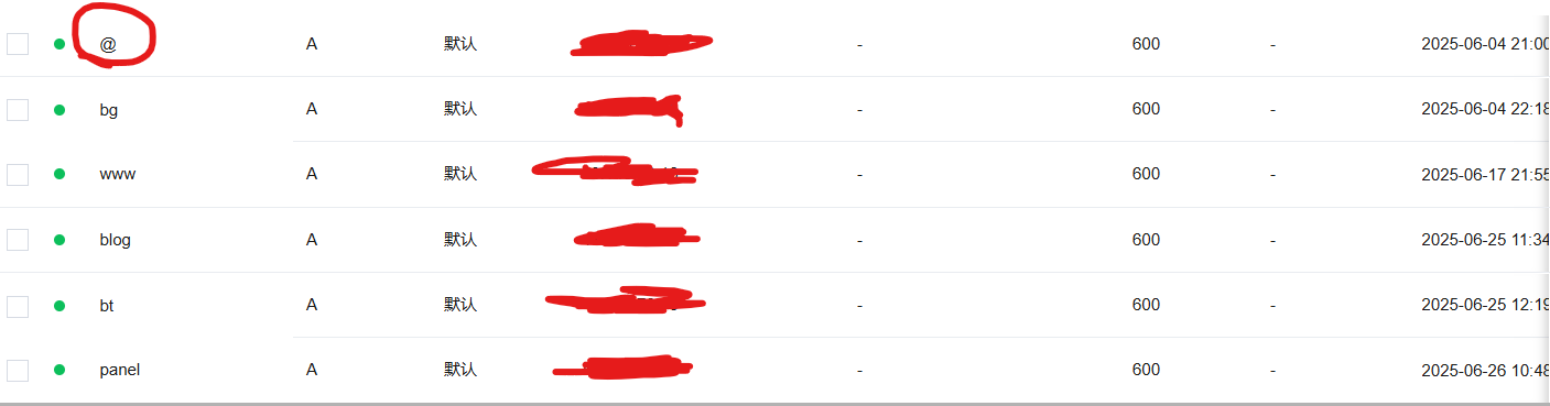 如上图所示,一定要添加 @.xxxxxx.com ,@代表将你的服务器与此域名绑定,以便于后续设置,其他按照你的需要填